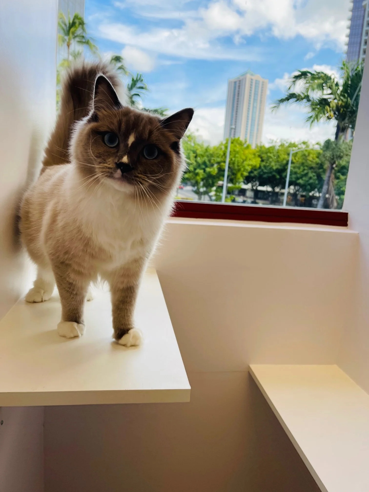 Our upgraded window standard room, villa suite, is ~160 cubic feet oasis for your kitty’s vacation!